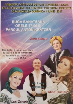 Primaria Orasului Deta si Consiliul local al orasului Deta in colaborare cu Centrul Cultural al orasului Deta organizeaza RUGA BANATEANA in Parcul Anton Kratzer
