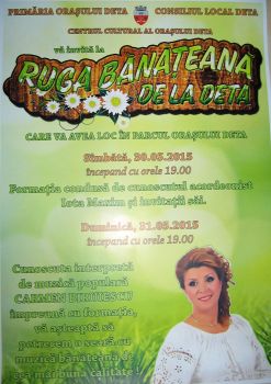 Consiliul Local al Oraşului Deta, Primăria Oraşului Deta şi Centrul Cultural al Oraşului Deta vă invită la RUGA BĂNĂŢEANĂ DE LA DETA, care va avea loc în Parcul oraşului Deta.