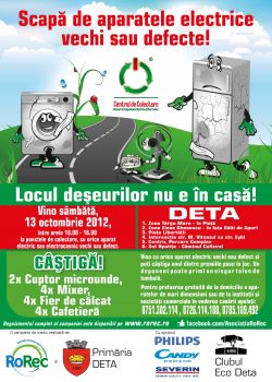 Sambata 13 octombrie 2012, intre orele 10 - 16, in orasul Deta, se organizeaza Campania de colectare de aparatura electronica, electricã si electrocanica veche.
